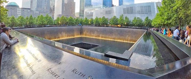 personne décédée dans les attentats, inscrits en bronze. Voyant ce mémorial